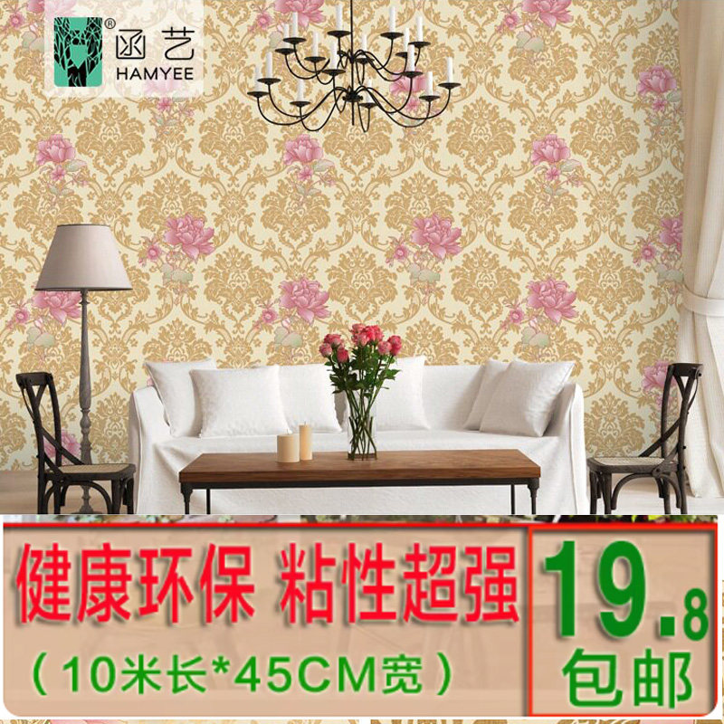 欧式田园无纺布自粘墙纸温馨3D立体卧室客厅电视背景环保贴纸壁纸