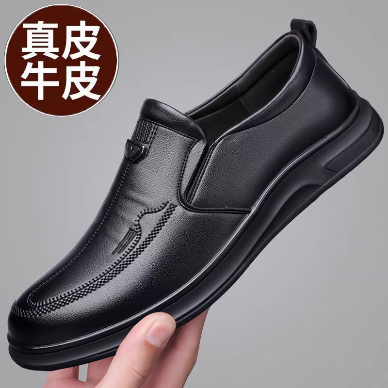 皮鞋男2025新款商务休闲鞋真皮男鞋秋冬透气男士豆豆鞋中年爸爸鞋