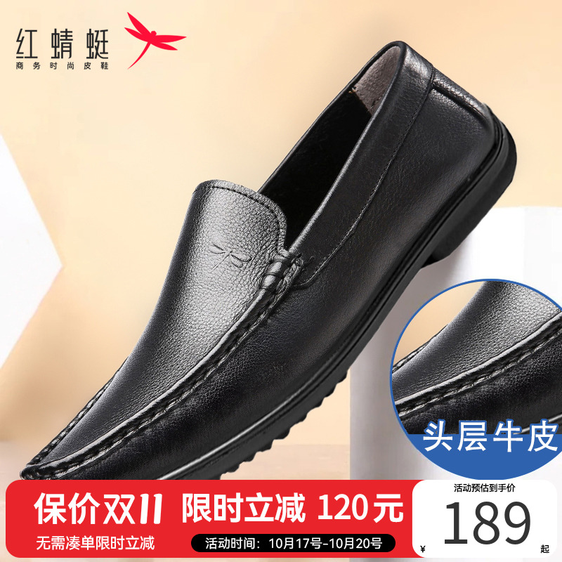 红蜻蜓休闲皮鞋2025秋季新款男鞋一脚蹬商务皮鞋真皮男士豆豆鞋男