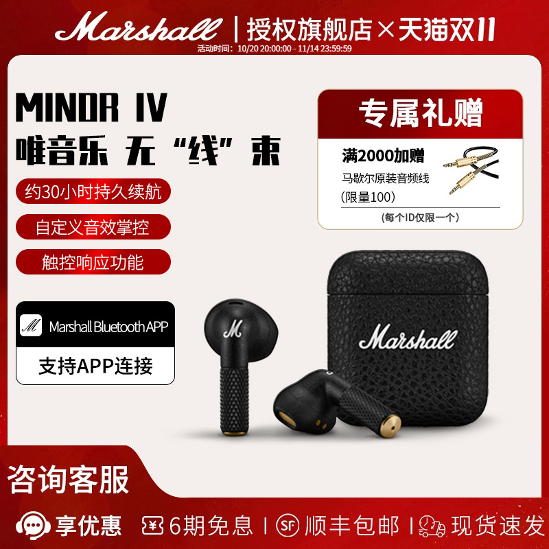 MARSHALL MINOR IV马歇尔蓝牙耳机四代4真无线入耳式运动马勺耳麦