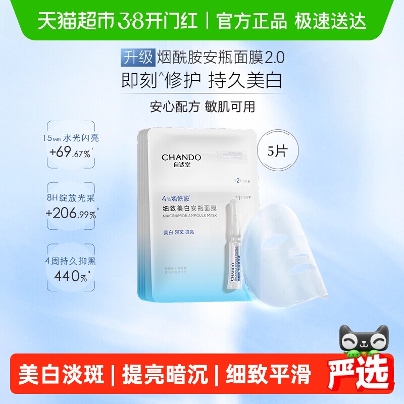 【38现货立抢】自然堂烟酰胺安瓶美白面膜 淡斑提亮修护补水面膜