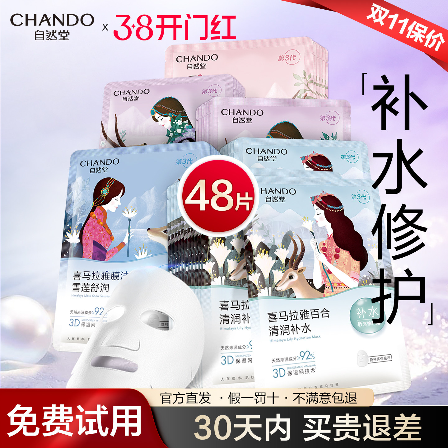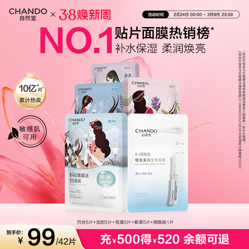 【下拉领补贴】自然堂喜马拉雅植物面膜40片补水保湿舒缓肌肤改善