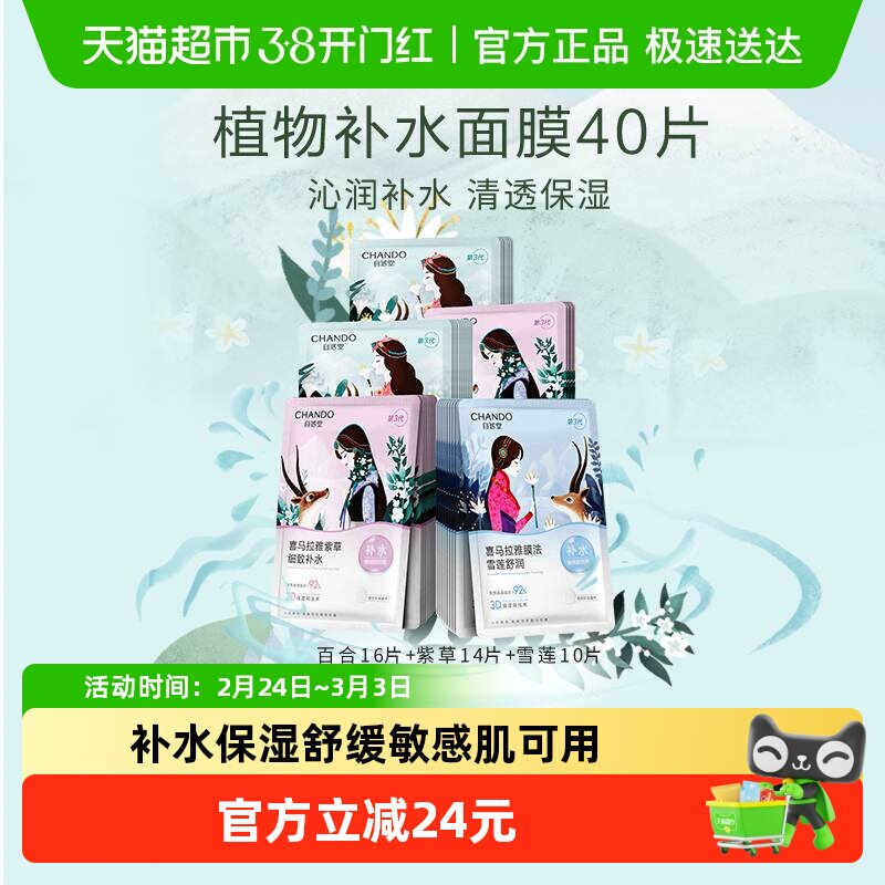 【下拉享优惠】自然堂补水保湿贴片面膜40片装舒缓肌肤敏肌可用