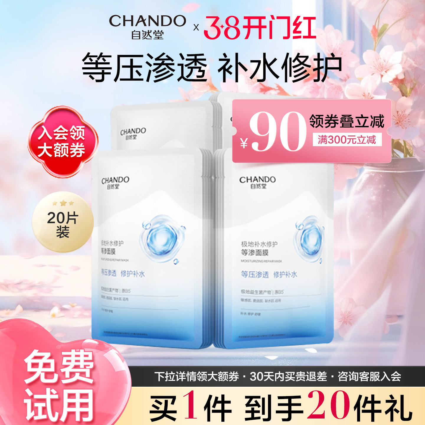 【38现货立抢】自然堂极地补水修护等渗面膜舒缓温和水润强韧屏障
