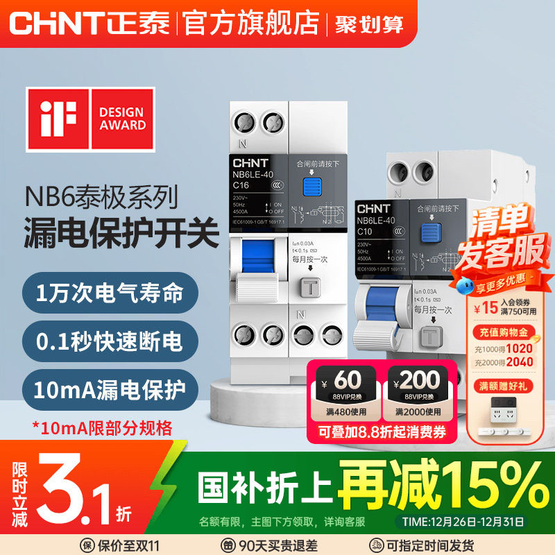 【国补15%】正泰断路器空气开关漏电保护交流接触器塑壳一站式