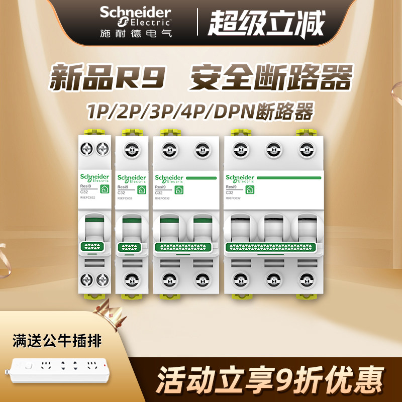 施耐德空气开关2P安全R9断路器1P空开电闸总开63A不带漏电保护器