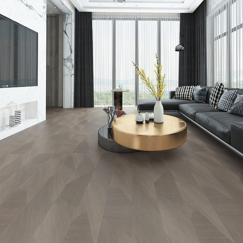 简约风灰色木纹个性几何拼花强化复合木地板家用环保防水耐磨地暖