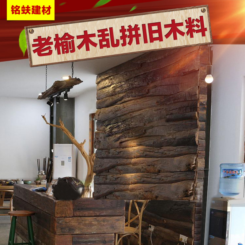 老榆木旧木板乱拼装饰背景板复古老木板实木地板个性怀旧风旧木料