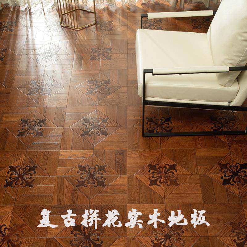实木多层复合木地板家用中式复古个性拼花浮雕纹实木表皮橡木地暖