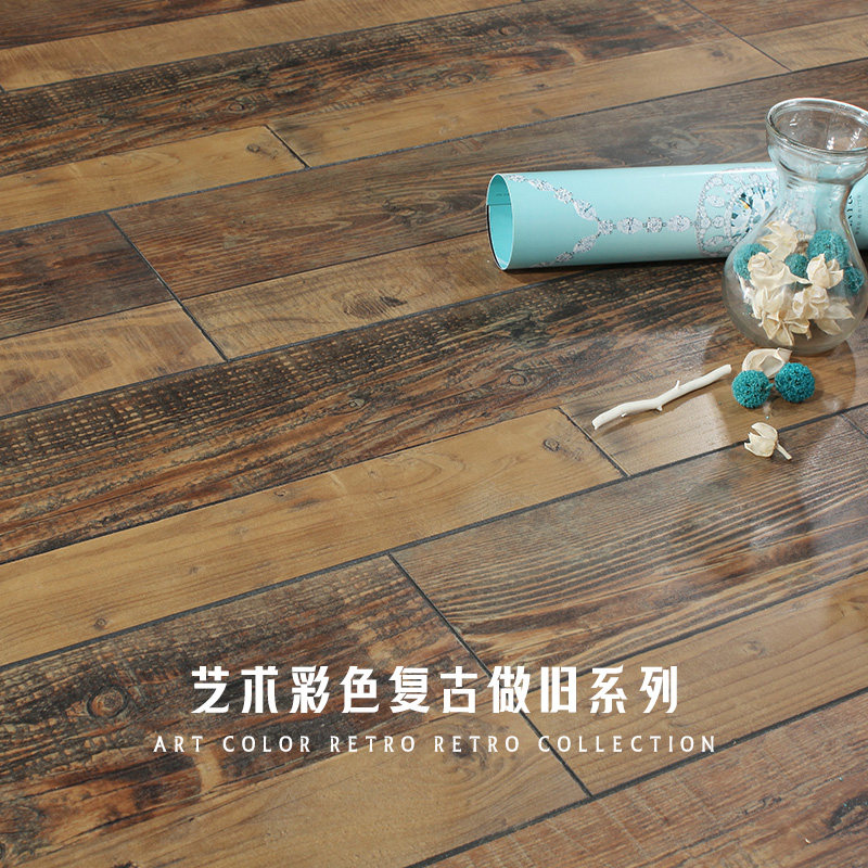 12mm个性抽象艺术彩色复古做旧灰色工业风店铺工装强化复合木地板