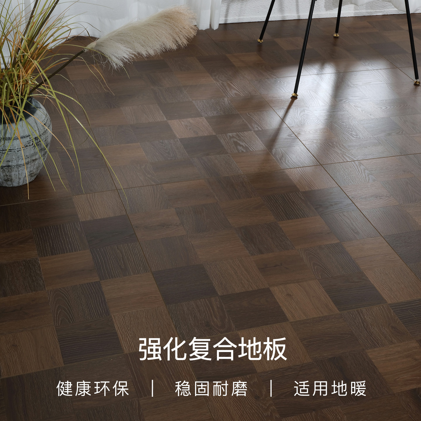 强化复合木地板家用个性纯黑白色环保耐磨地暖防水厂家直销12mm