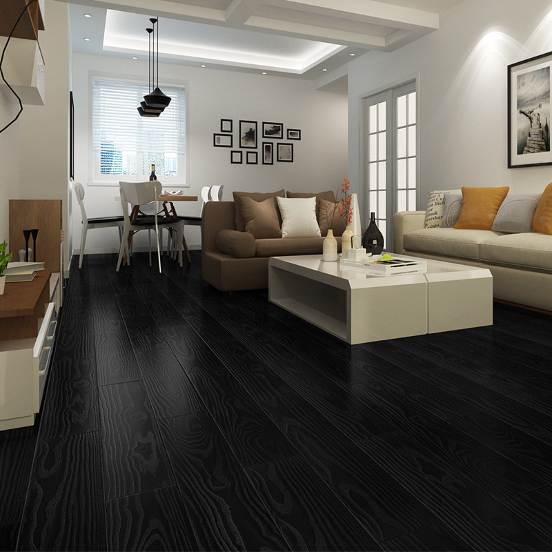 黑白色木地板强化复合家用复古个性家用环保耐磨防水厂家直销12mm
