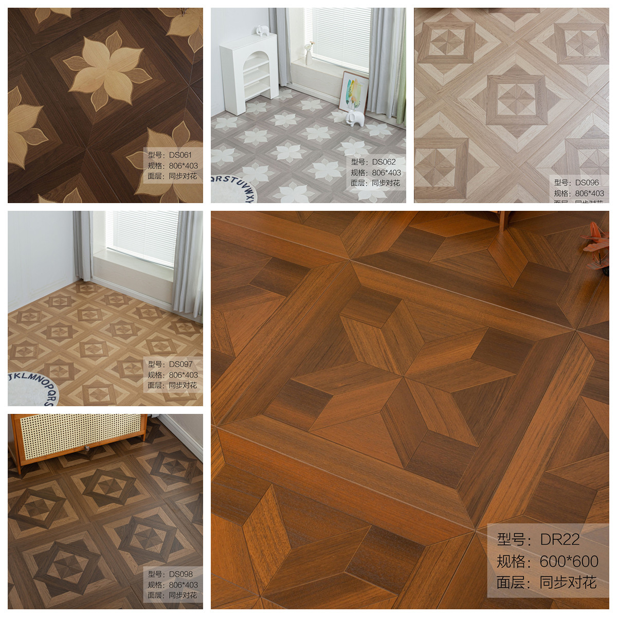 复古风个性拼花强化复合木地板家用环保耐磨防水地暖厂家直销12mm