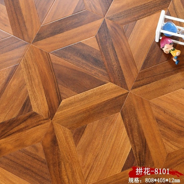 个性环保家用拼花耐磨会所酒店服装店地板欧式12mm强化复合木地板