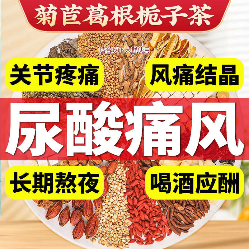 菊苣栀子茶酸尿痛用专茶茯苓葛根桑叶排正品特降效养生茶尿酸百合