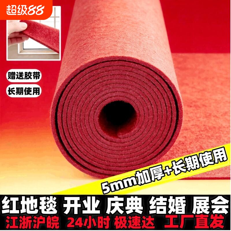 红色地毯一次性婚庆结婚用开业典礼店铺门口加厚防滑批发毛毡地垫