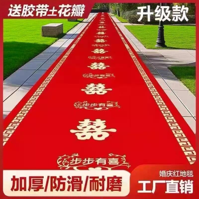 结婚大红地毯加厚无纺布一次性婚庆婚礼楼梯户外防滑防水耐磨喜字