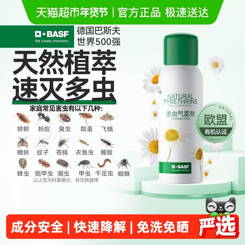 巴斯夫除虫菊素杀虫除螨喷气雾剂蟑螂药跳蚤家用室内非无毒全窝端
