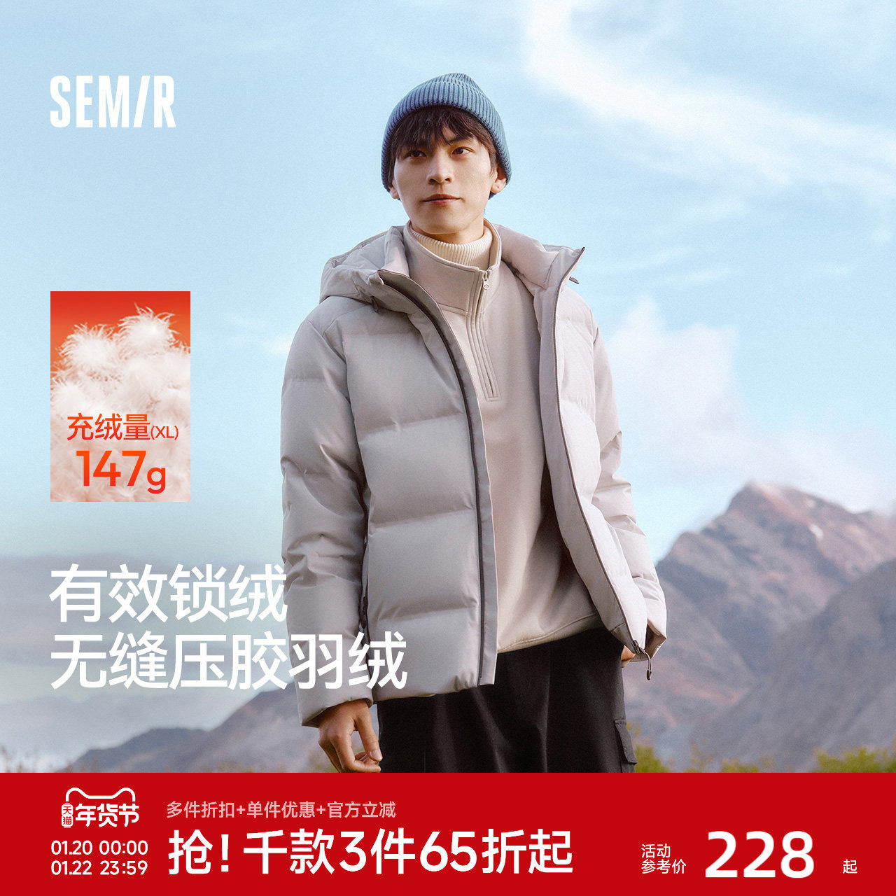 森马羽绒服男无缝压胶连帽外套防泼水户外上衣轻薄款冬装简约休闲