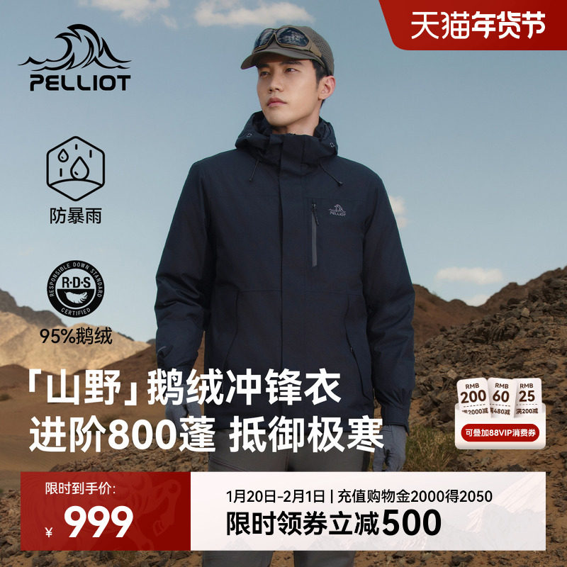 【山野|鹅绒版】伯希和户外黑色冲锋衣男冬季加厚防风保暖羽绒服