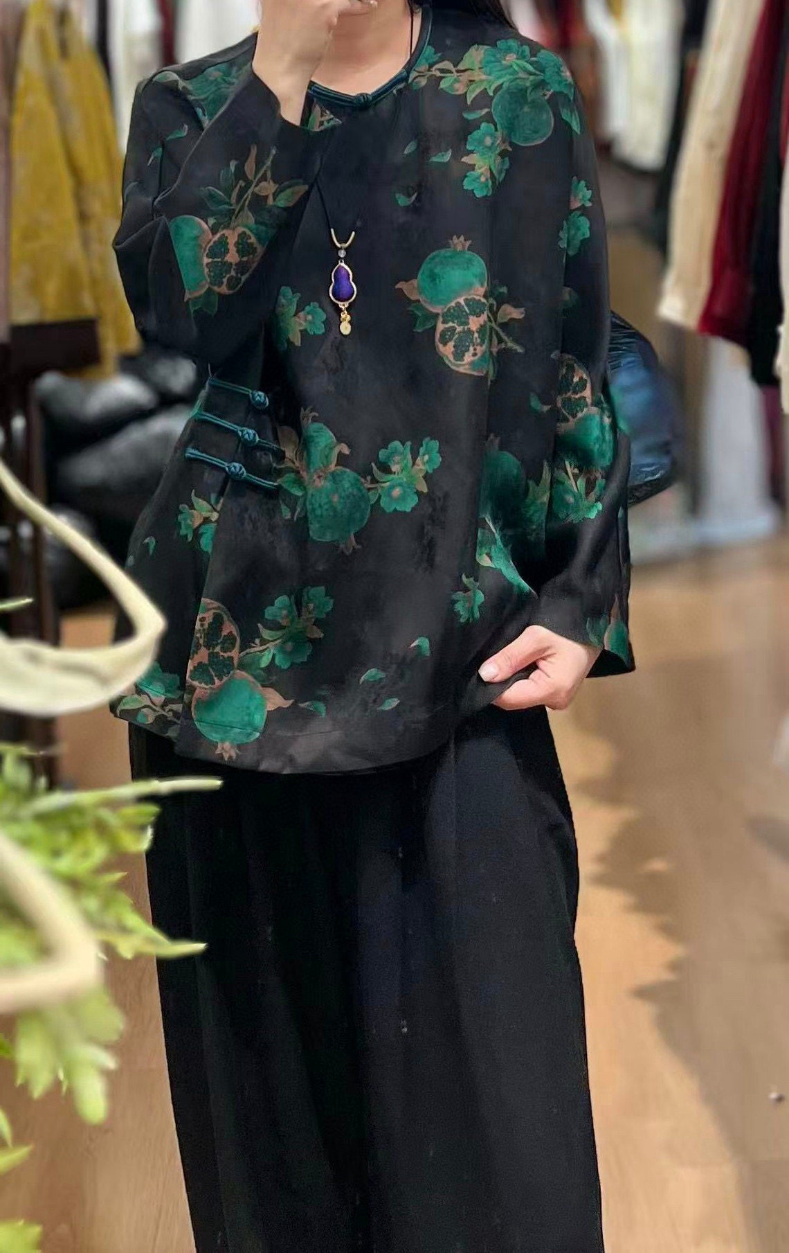SILVIYE真丝绞萝香云纱提花上衣女灯笼袖100桑蚕丝新中式上衣早秋