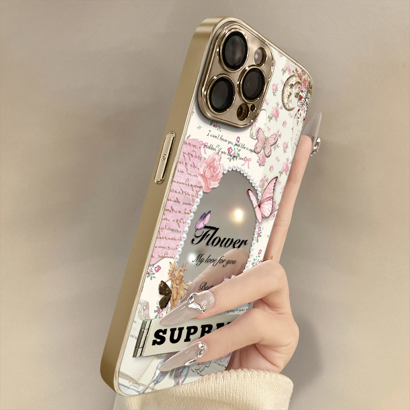 捧花猫咪适用苹果17promax/16手机壳女士新款iPhone17pro/15plus/14/13/12/11系列e全包镜头8/7外壳网红爆款