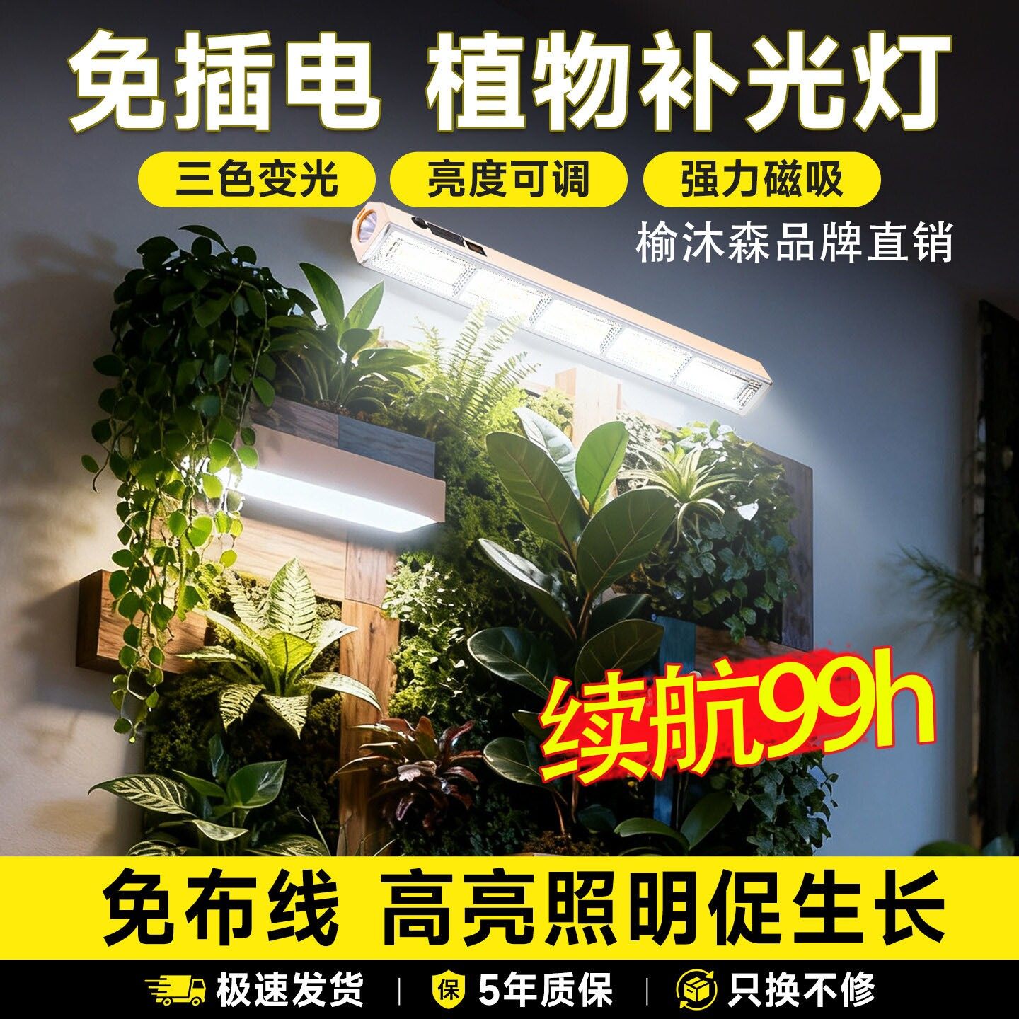 绿植物补光灯仿太阳充电款便携防水长条磁吸led照明灯室内生长灯