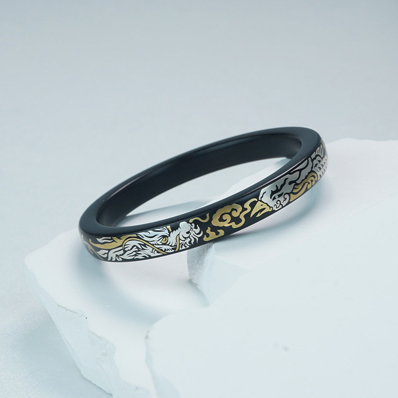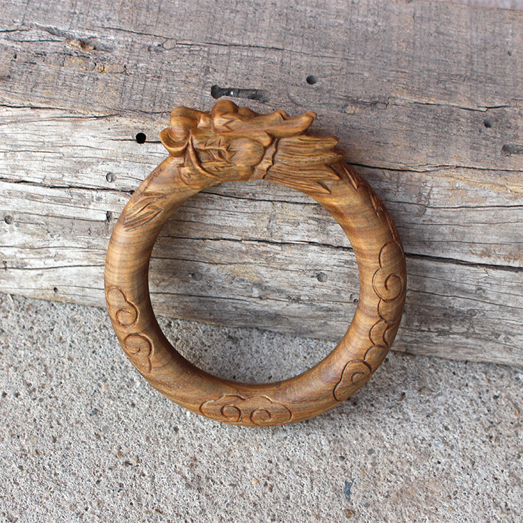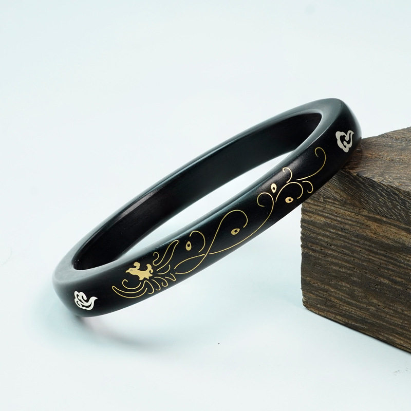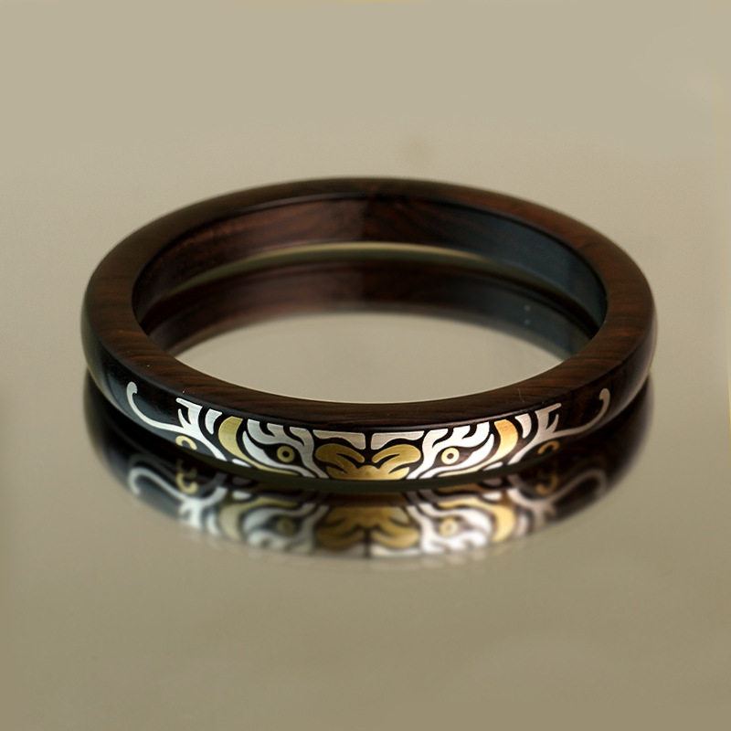 黑檀木镶银国风龙凤祥云手镯紫光檀镶嵌铜凤舞九天实木镯子手饰品
