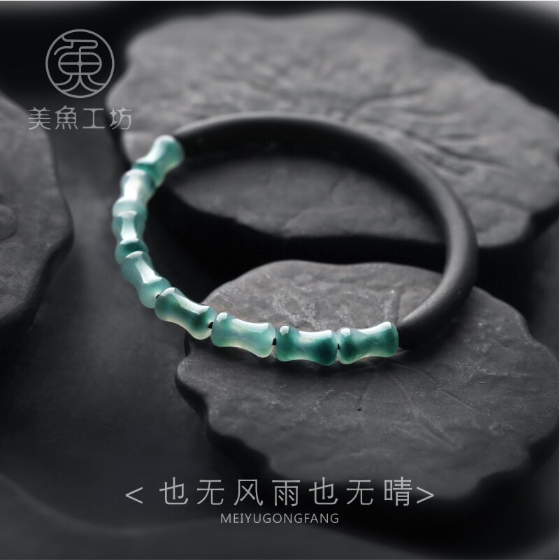 「也无风雨也无晴」黑檀木玉竹节细手镯女款闭口手串手饰国风饰品