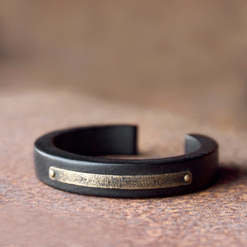 曲尾花原创黑檀木古铜手镯男嘻哈欧美复古几何手环情侣个性首饰女