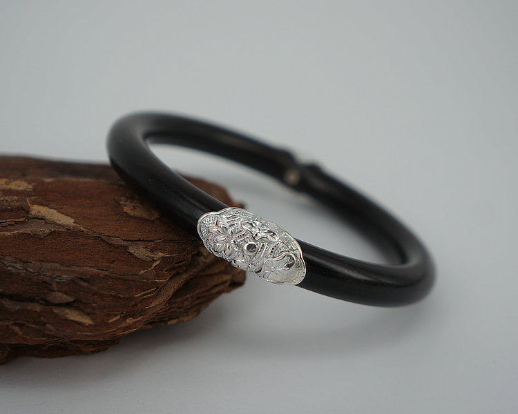 ph 925纯银7 印度 黑檀木 花开富贵 双荷花 银木手镯 女式手镯