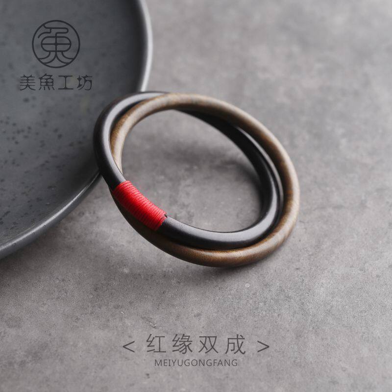 非鱼之家原创设计手工饰品 个性黑檀木手镯女 复古国风潮搭手环男