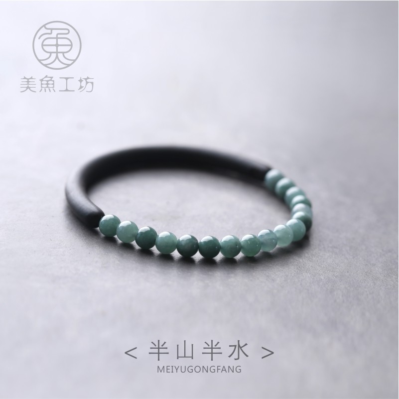 「半山半水」天然黑檀木翡翠细手镯女款闭口手串手饰文艺古风饰品