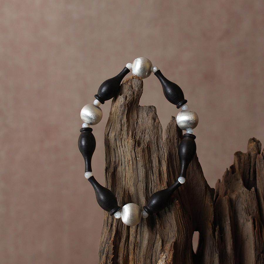 FHSTUDIO原创设计黑檀木花瓶925纯银磨砂珠手镯手串新中式