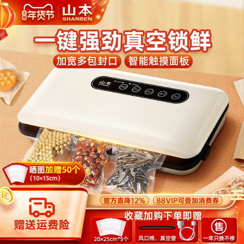 山本真空封口机小型家用食品袋全自动抽空包装封塑密封零食保鲜机