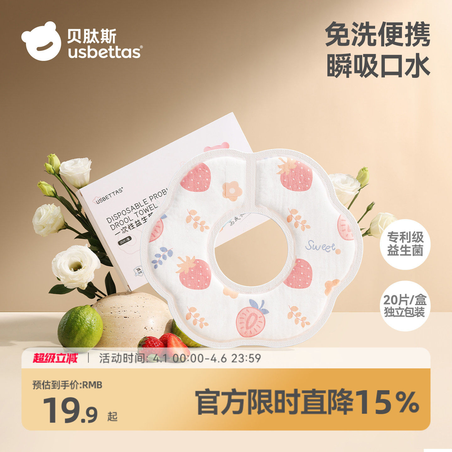 贝肽斯一次性口水巾婴儿围嘴宝宝婴幼儿口水巾围兜防水围嘴a类巾