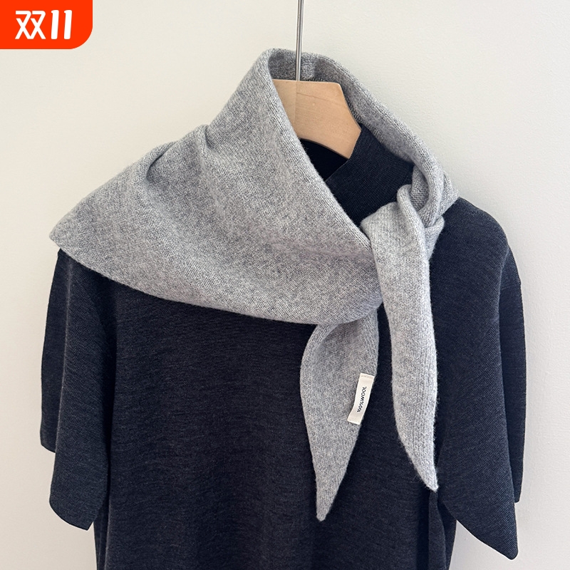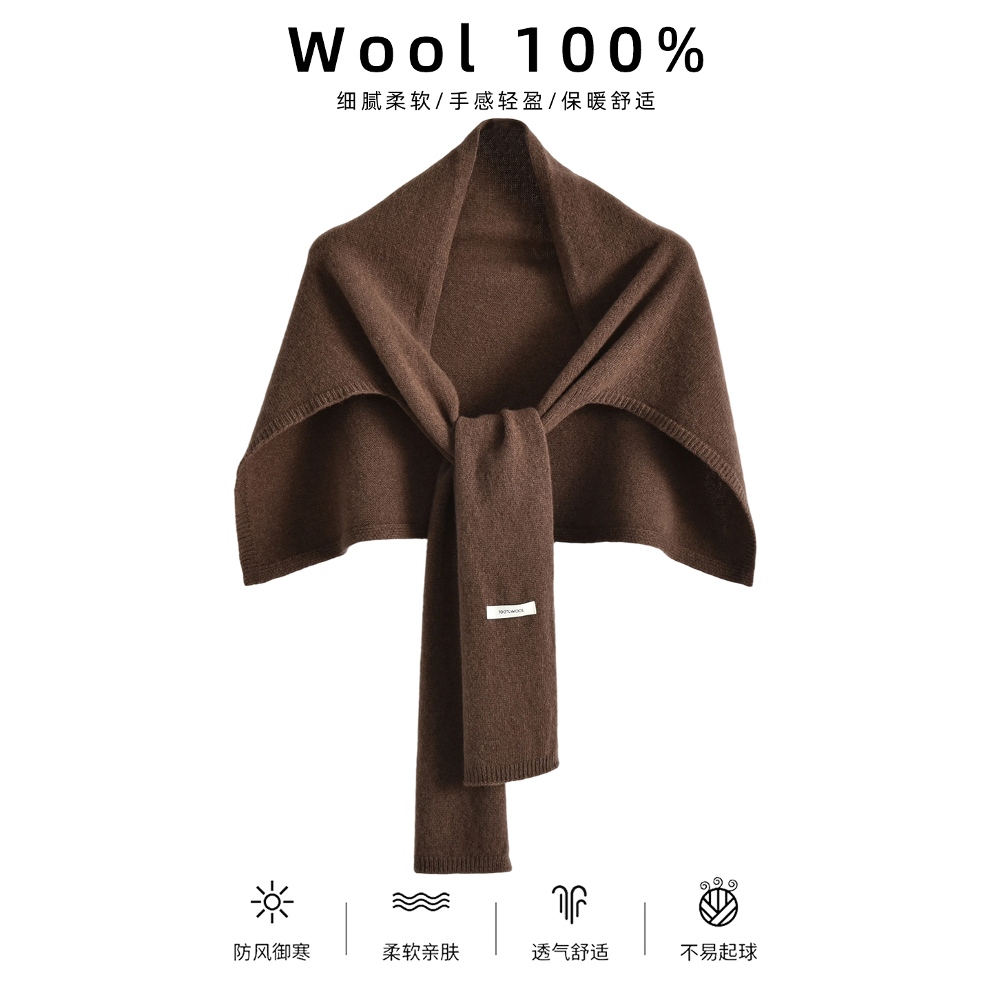 100%羊毛针织三角巾披肩女秋冬款保暖头巾多功能保暖百搭小围巾女