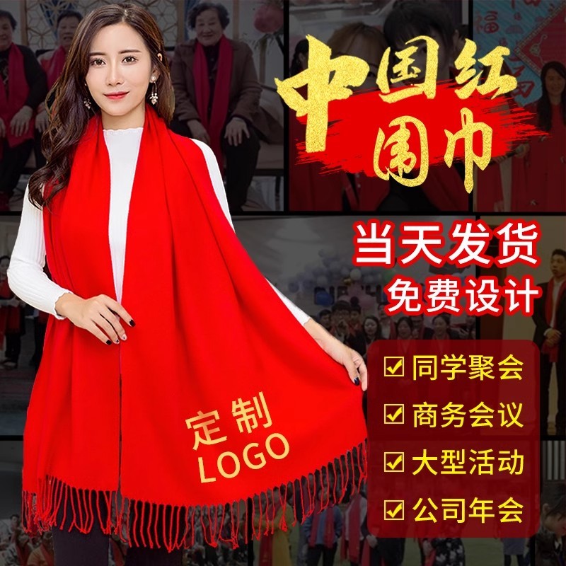 中国红大红色围巾定制logo公司年会同学聚会活动围脖批发刺绣印字