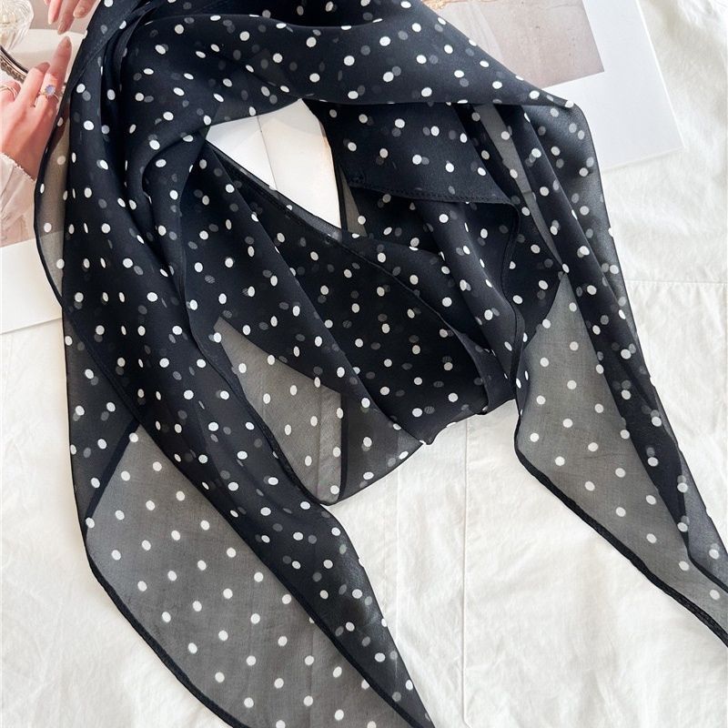 2025正流行围巾法式赫本风黑色波点女士丝巾围巾长款时尚纱巾防晒
