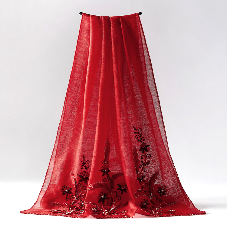 日系手工刺绣钉珠立体花丝巾围巾女春秋羊毛真丝混纺披肩百搭长款