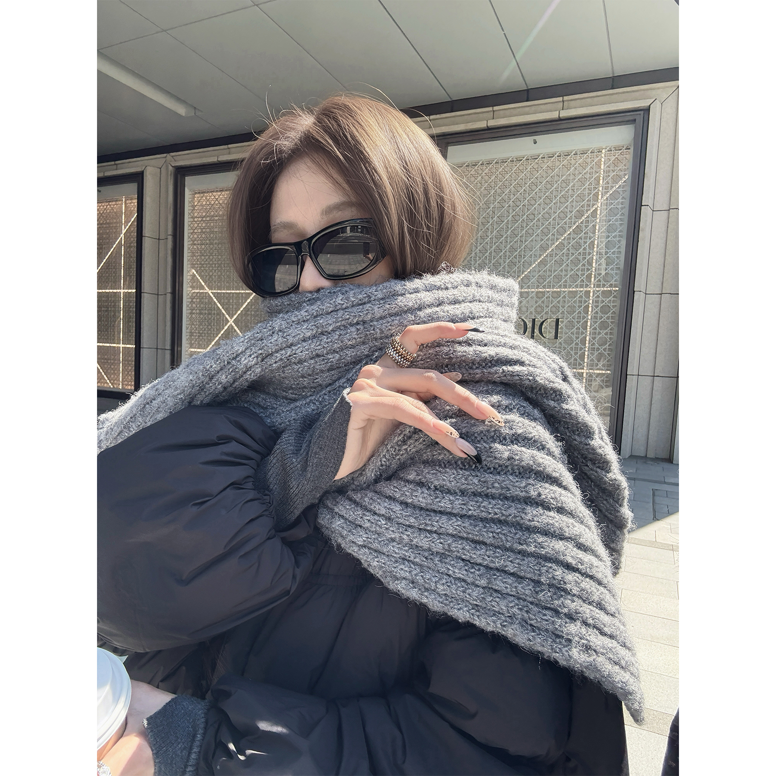 superniniyy 冬日围城&韩系氛围感含羊毛超大块坑条加厚保暖围巾