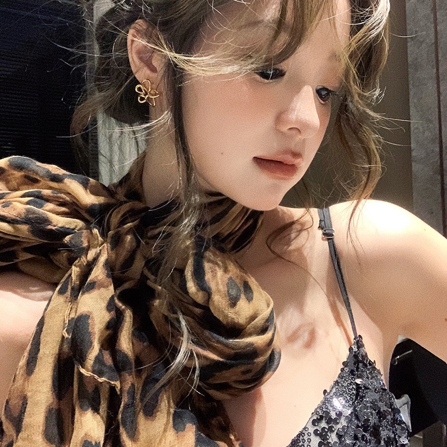 围巾女款2025新款冬正流行豹纹高级感辣妹复古氛围感时尚纱巾围脖