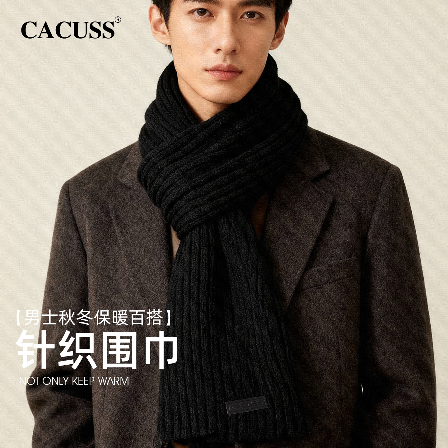 CACUSS针织围巾男冬季韩版百搭2025新款时尚加厚保暖防寒毛线围脖