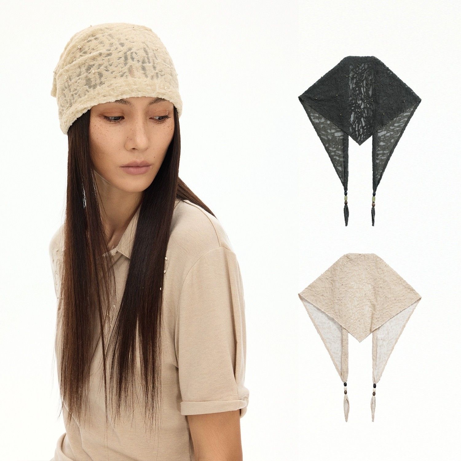 INTERRIS「欧阳娜娜同款」手工木珠三角巾植物纹理针织头巾围巾女
