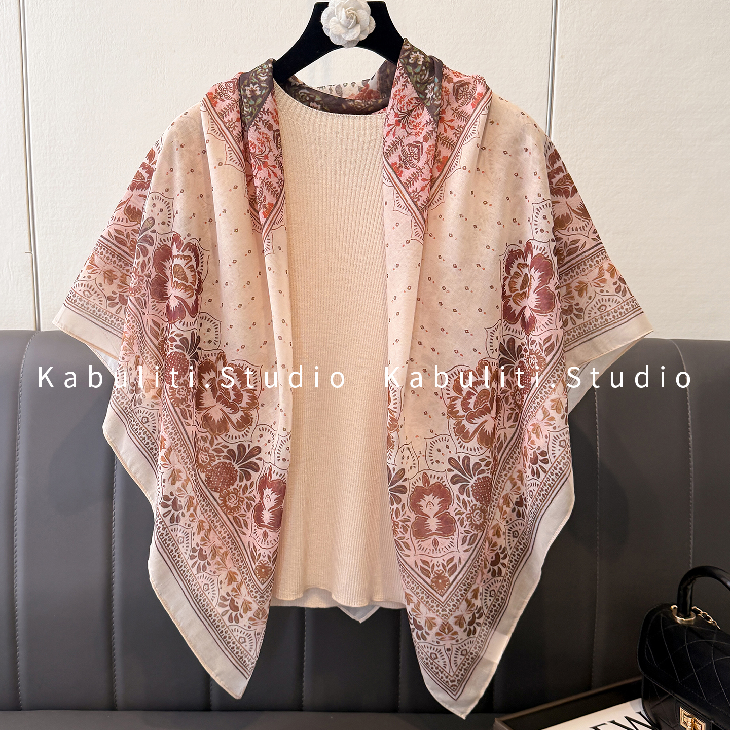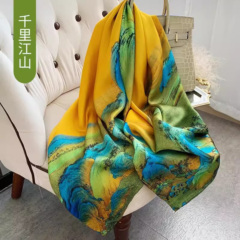 上海故事高档桑蚕丝丝巾围巾披肩两用缎面喷绘大方巾110cm送礼物