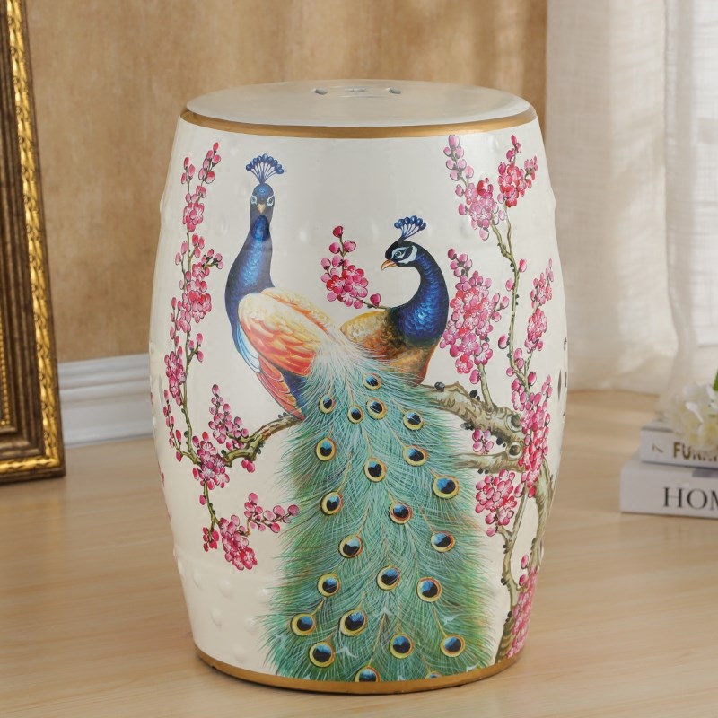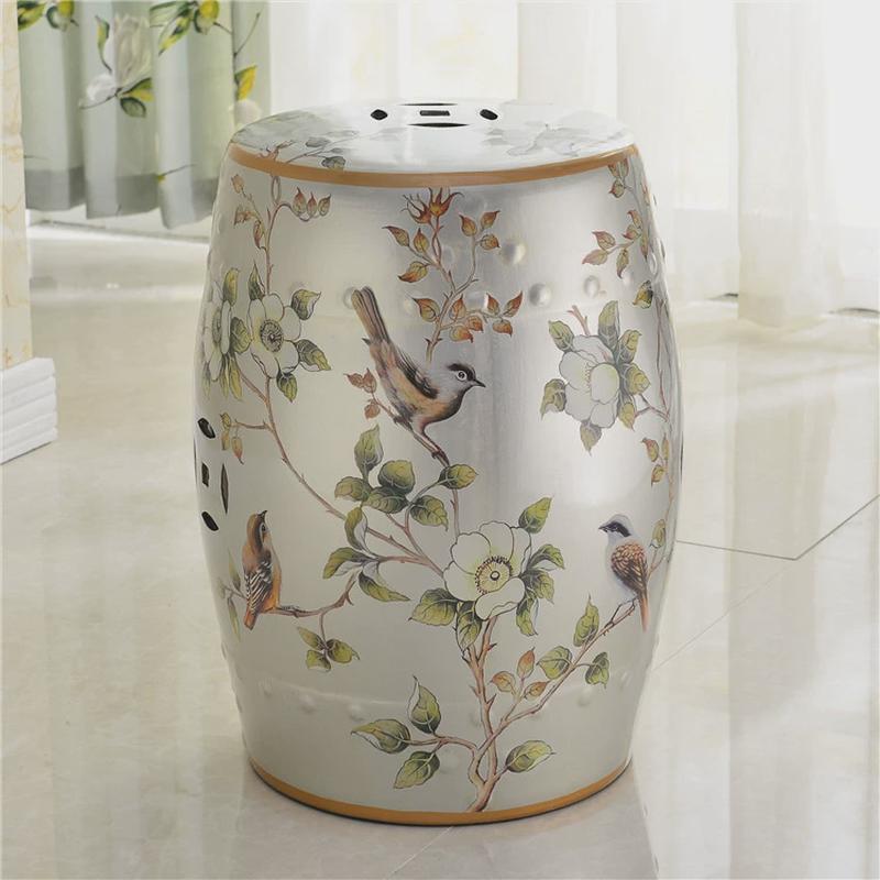新品花鸟竹木陶瓷鼓凳美式家居工艺梳妆凳换鞋凳家居装饰摆件储物