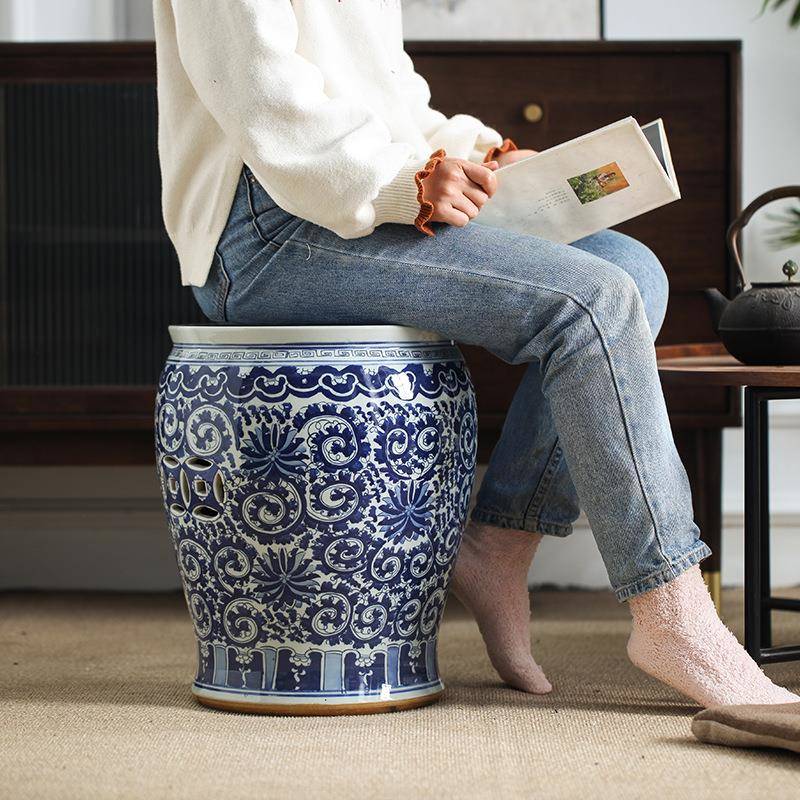 迷屿新中式青花瓷陶瓷鼓凳复古陶瓷凳卧室边几创意瓷墩子换鞋坐凳
