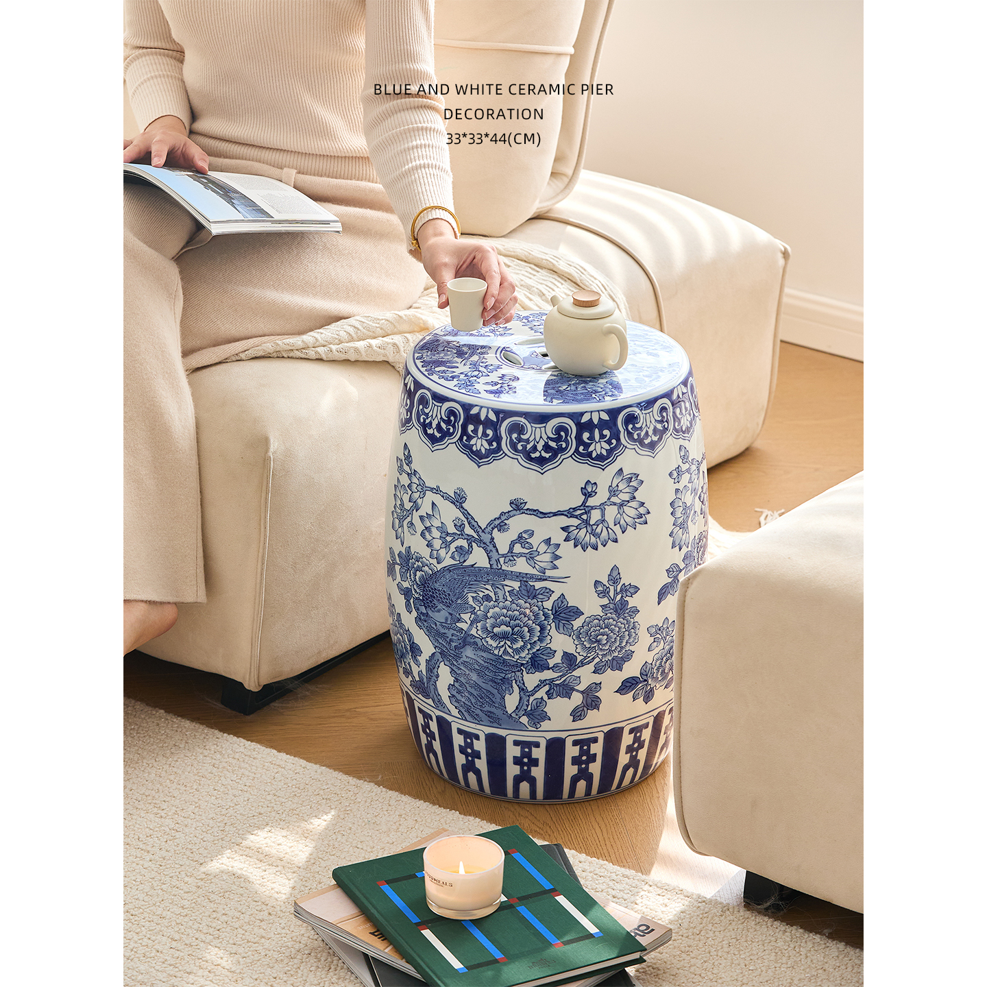 青花瓷凳陶瓷凳子 瓷墩 新中式 鼓凳 售楼处样板间 软装装饰摆件