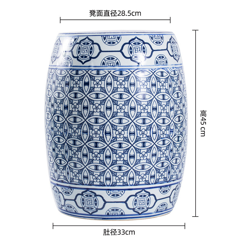 迷屿 陶瓷凳几何图案青花瓷梳妆凳换鞋凳新古典陶瓷凳子鼓凳墩子