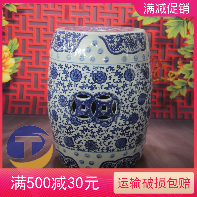 低价促销中式墩瓷陶瓷凳空子软装坐椅镂花489789园陶艺凳摆件大号